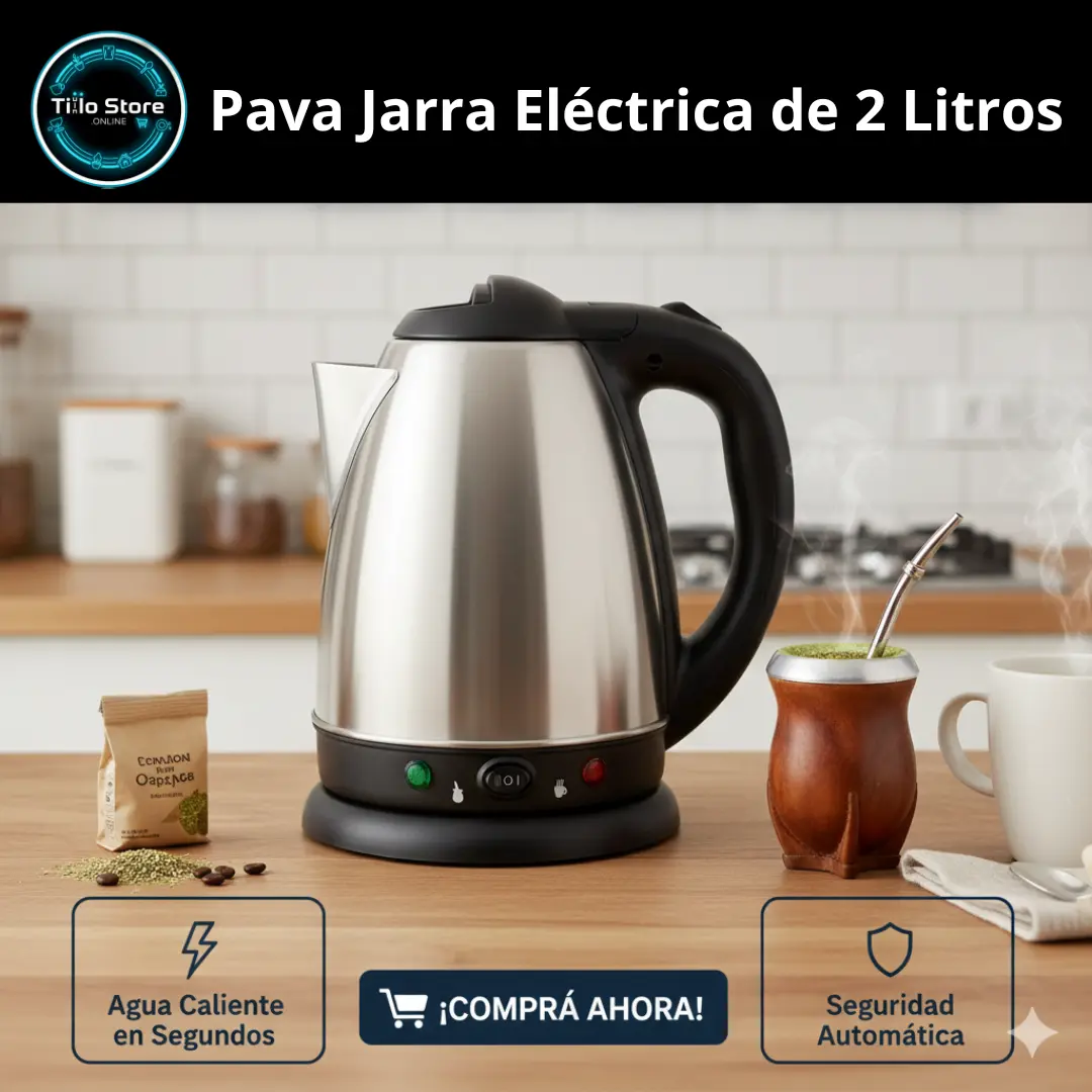 Pava Jarra Eléctrica 2L Acero Mate: Estilo, Rapidez y Seguridad en tu Cocina 💎🧉