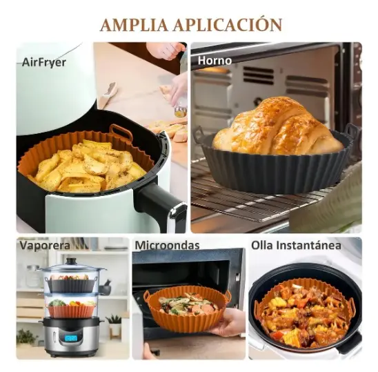 - 1x Recipiente de Silicona Redondo para Airfryer (Color sujeto a disponibilidad).