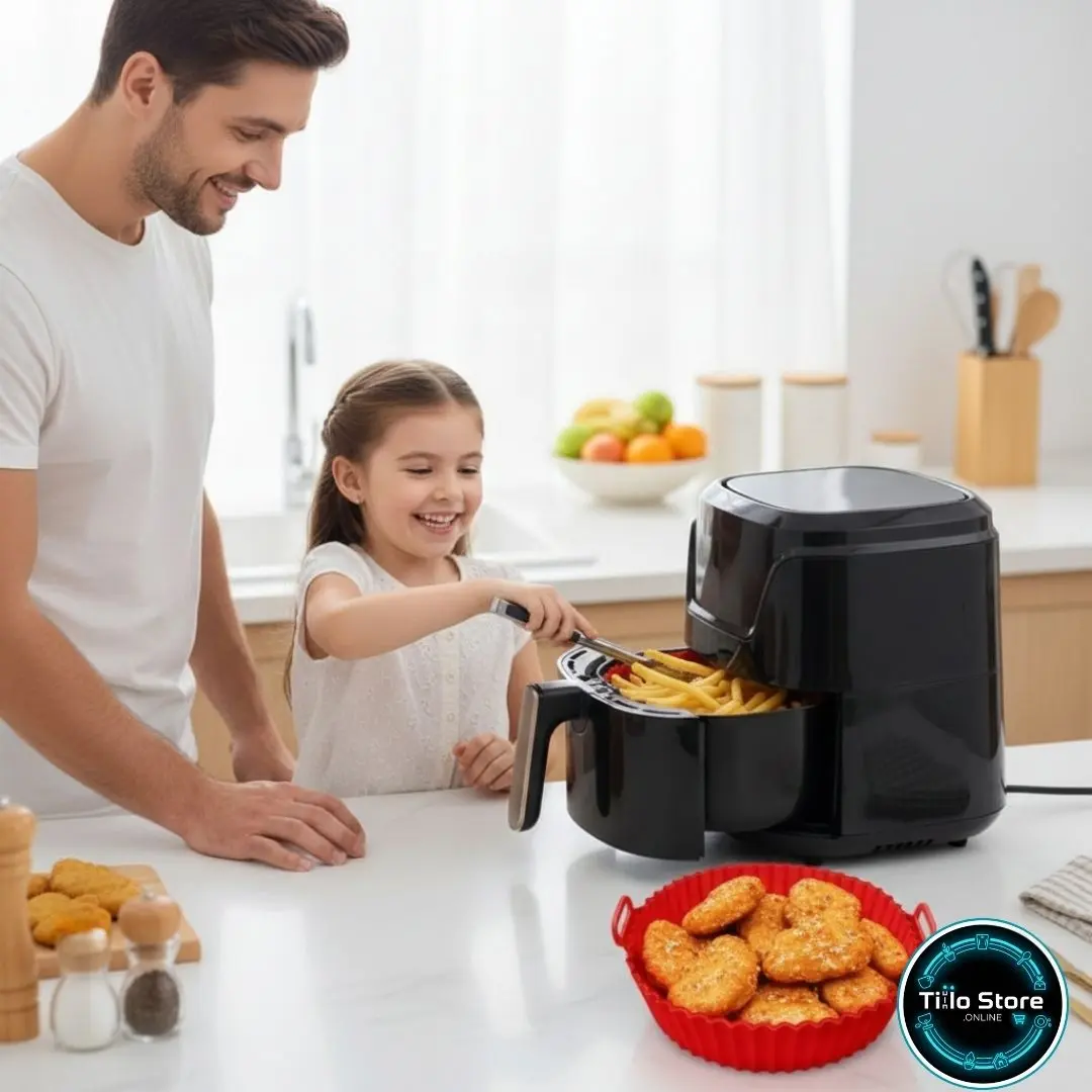 Nuestro Molde de Silicona de Alta Resistencia fue diseñado para proteger el canasto de tu Airfryer, evitar el desgaste del antiadherente original y ahorrarte tiempo valioso en la cocina.